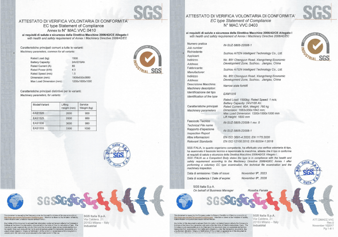 3. CE 标志(欧盟): 确保符合机械指令,强调对繁忙仓库等动态环境的风险评估,在这些环境中,叉车与行人和手动设备相互作用。为满足欧洲市场的法规要求,BB贝博艾弗森产品经过严格审核,为包括 MP10AM1516AE15、AS15 和其他产品在内的 AGV 产品获得了欧盟 CE 证书。