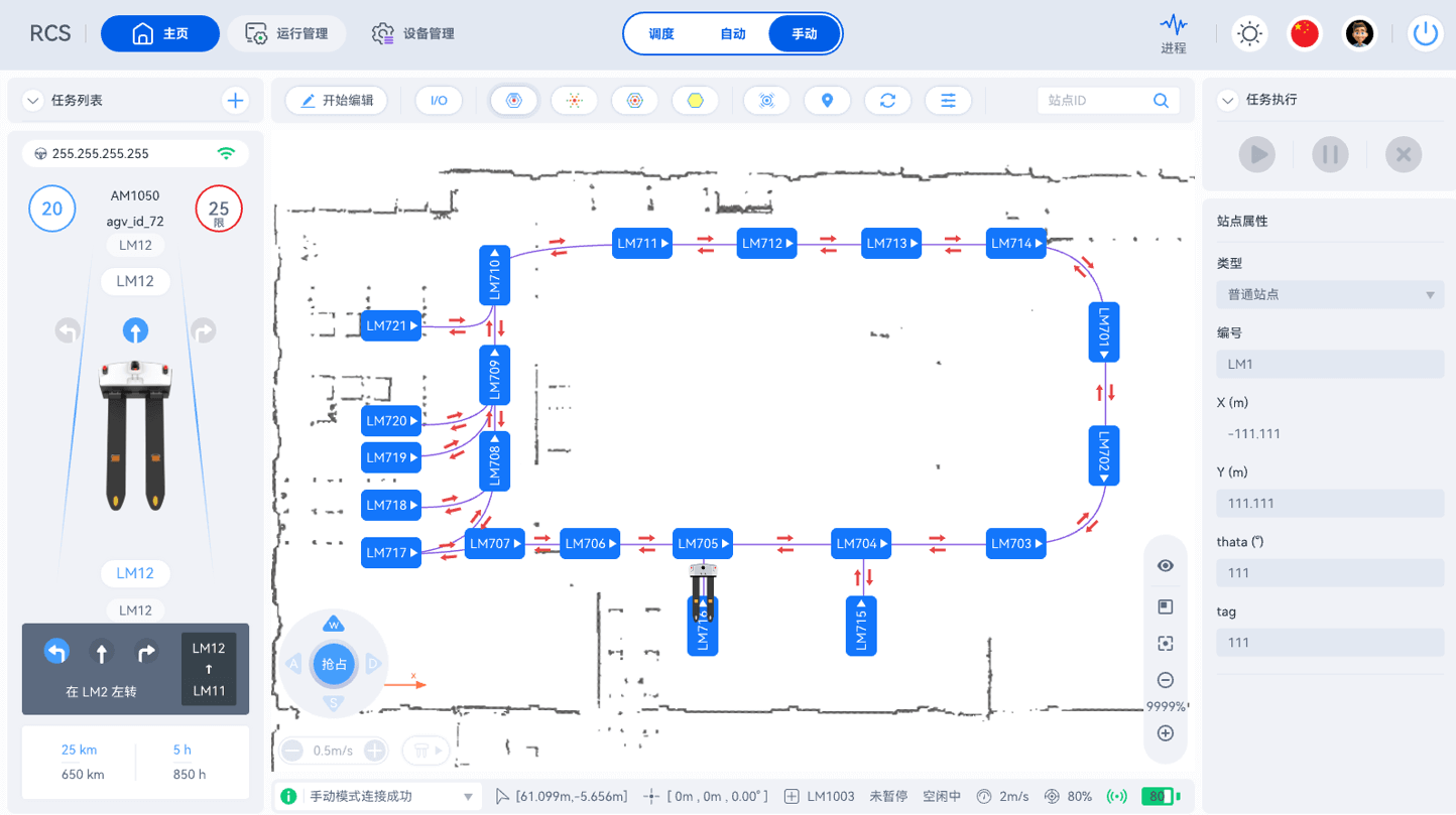 用于管理AiTEN艾弗森ballbet.com机器人的RCS(机器人控制系统)是一个直观的工具,它具备高精度传感定位,可异常实时响应处理,应对货架位移/临时障碍物干扰。